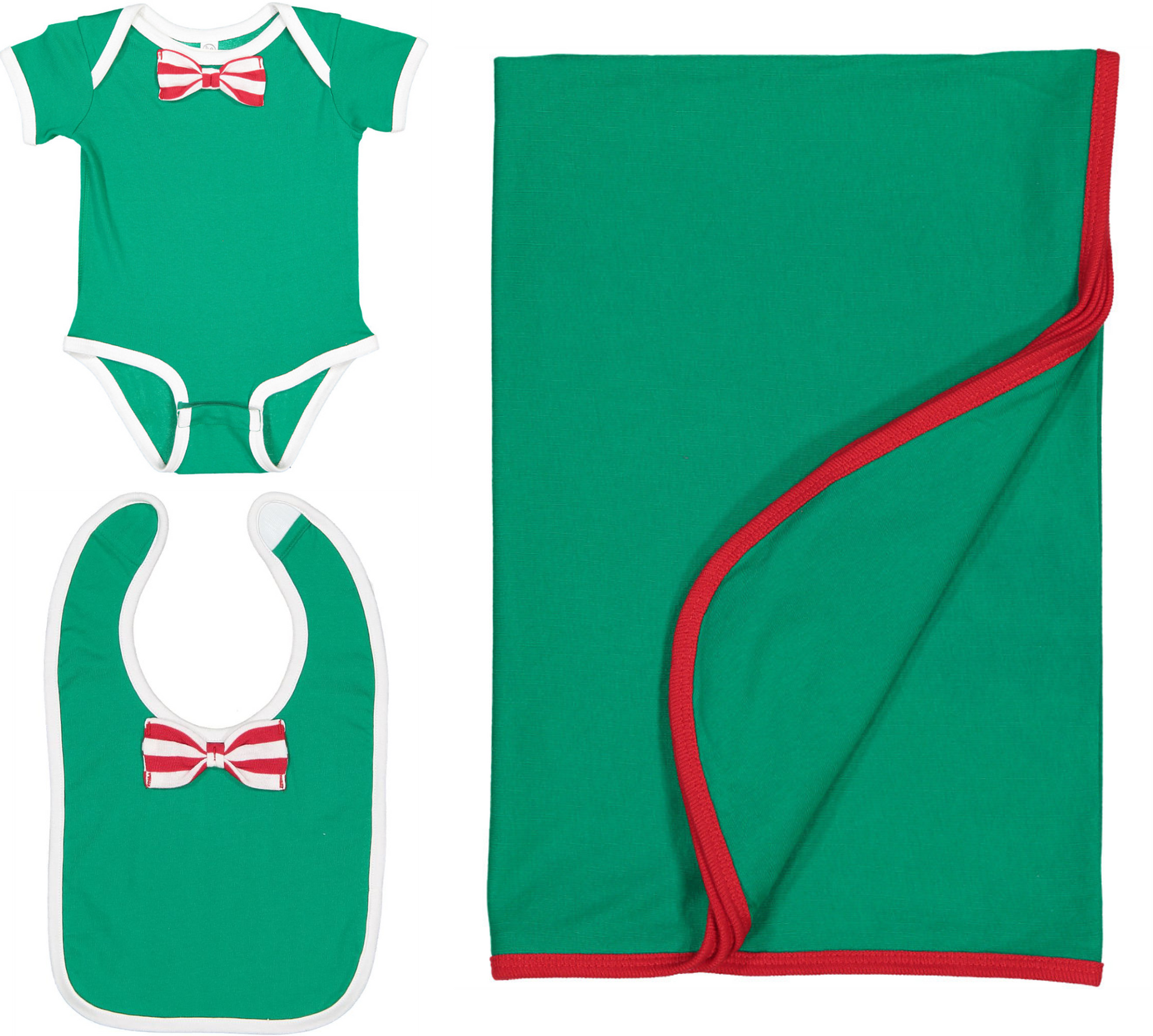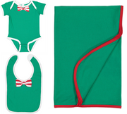 Blanket/Bib: 5.5oz 100% combed cotton premium jersey. Blanket is not decorated.